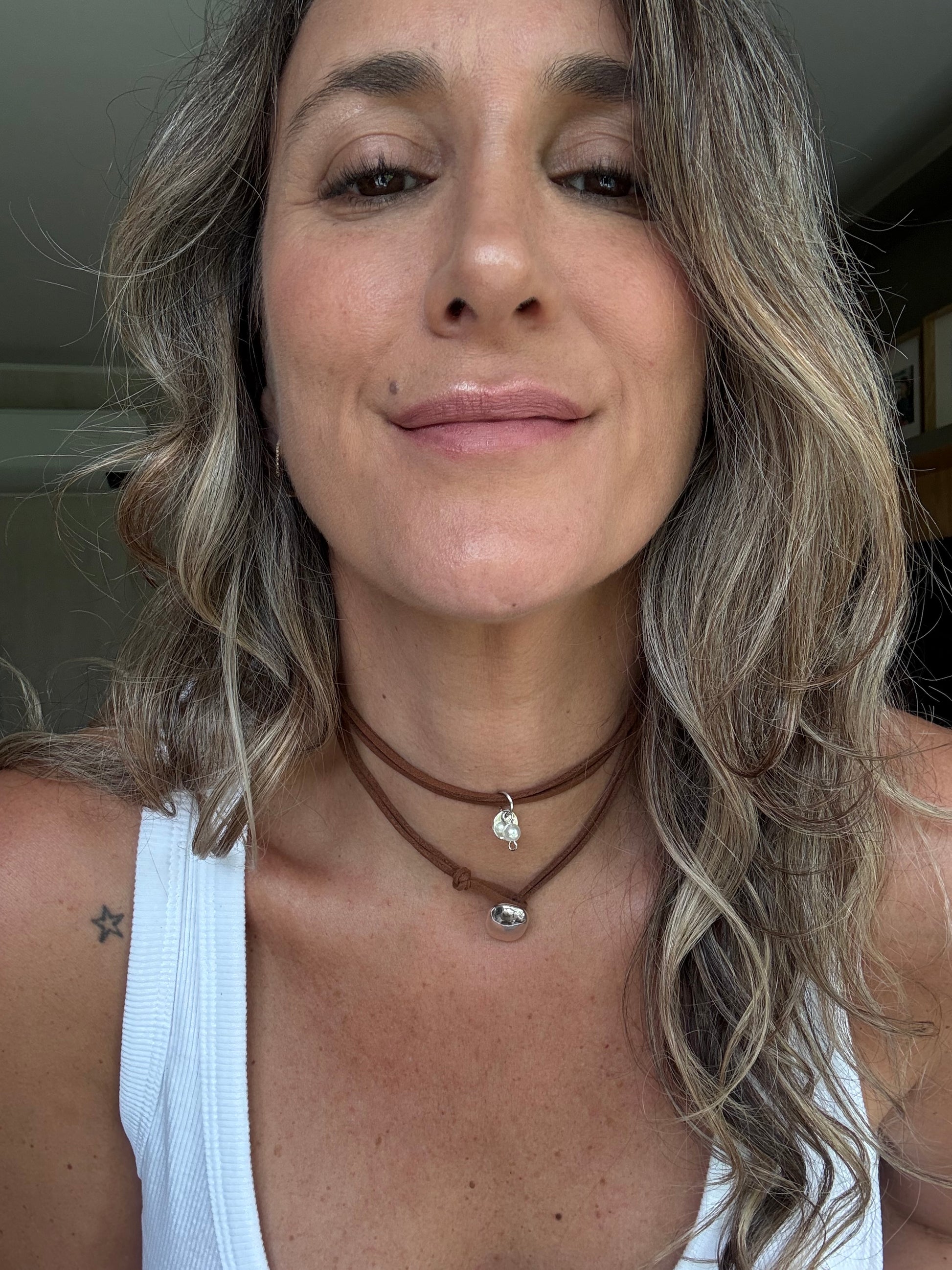 Collar de fantasía con gamuza y adoro en baño de plata y perla