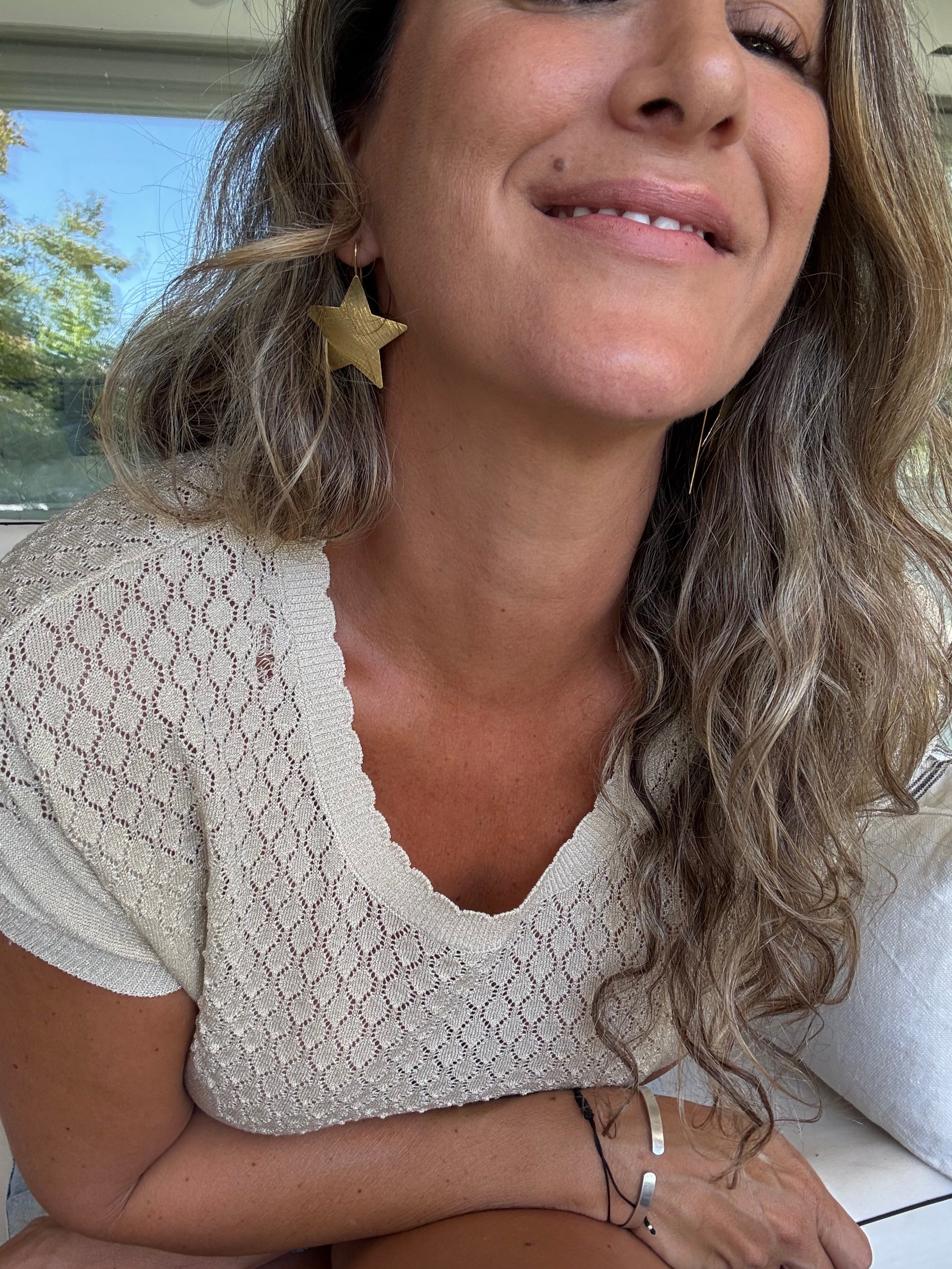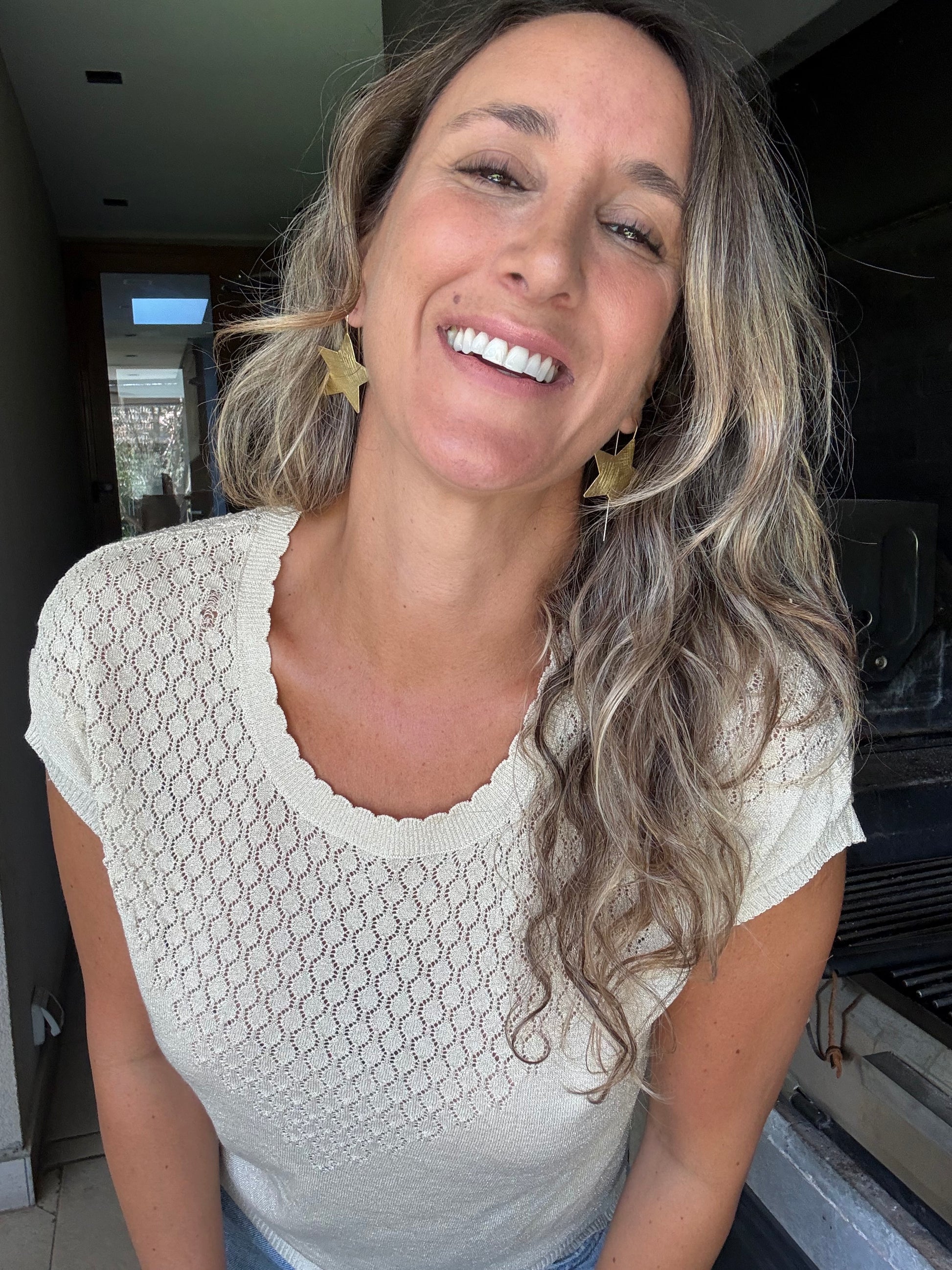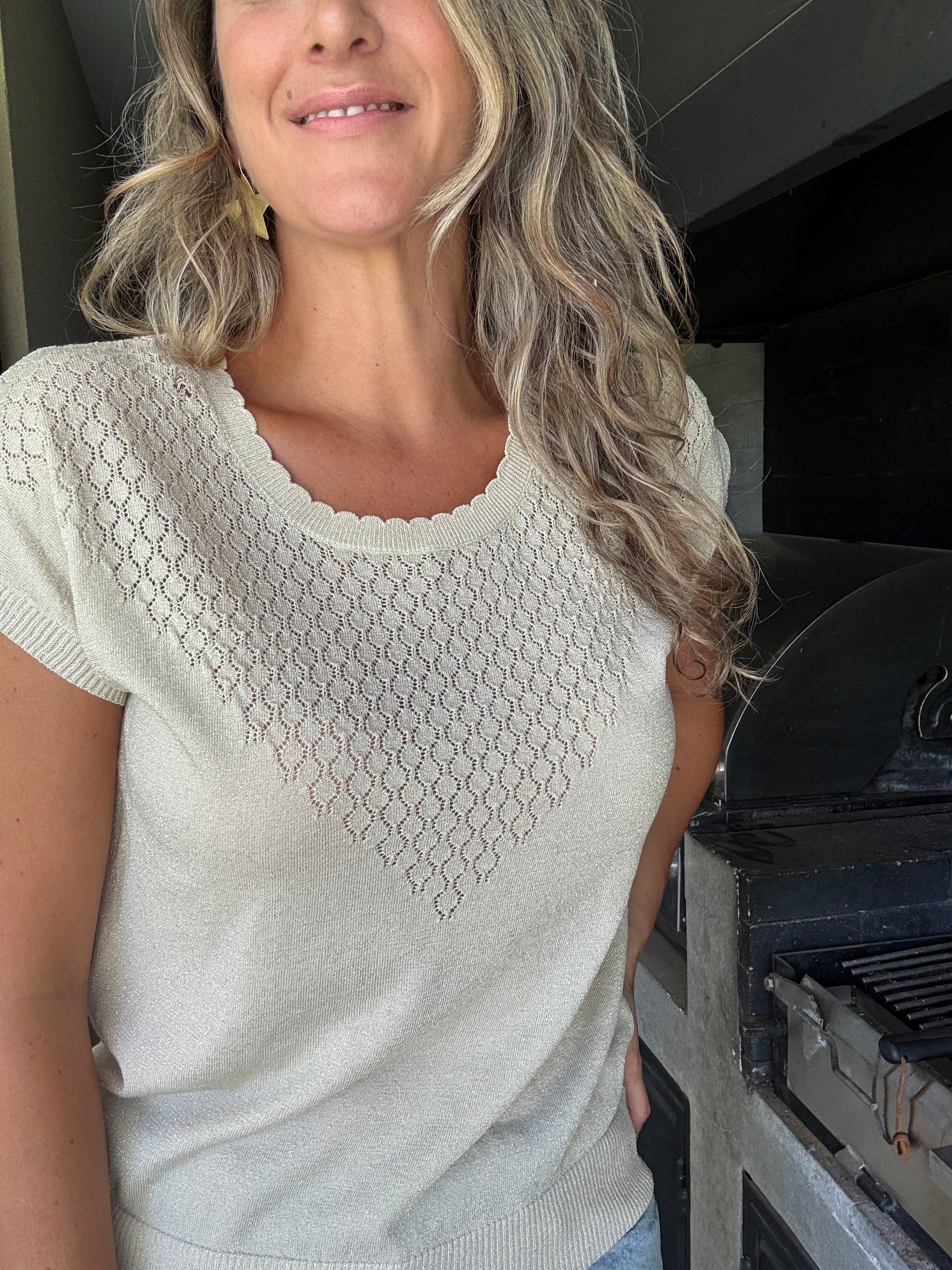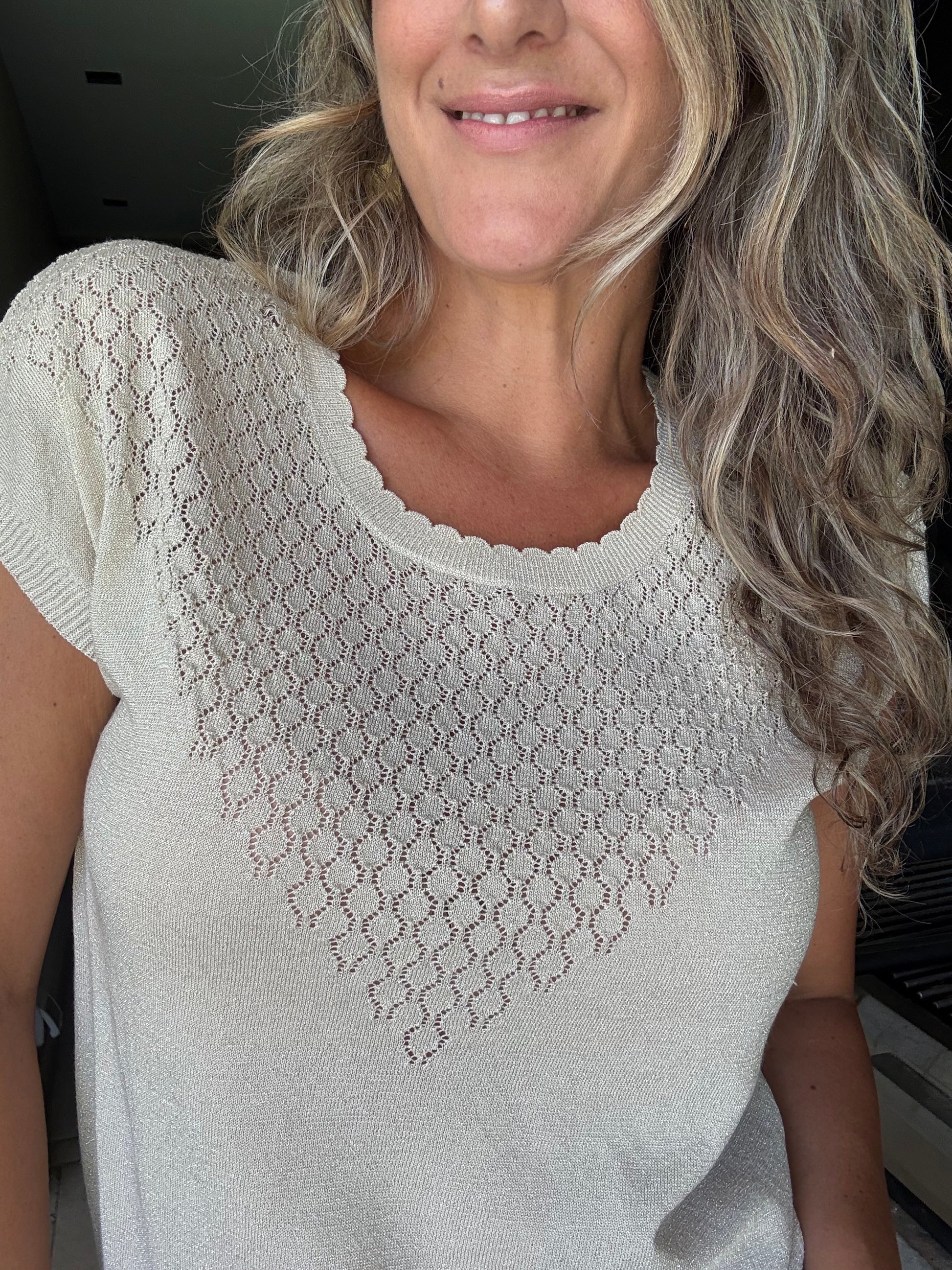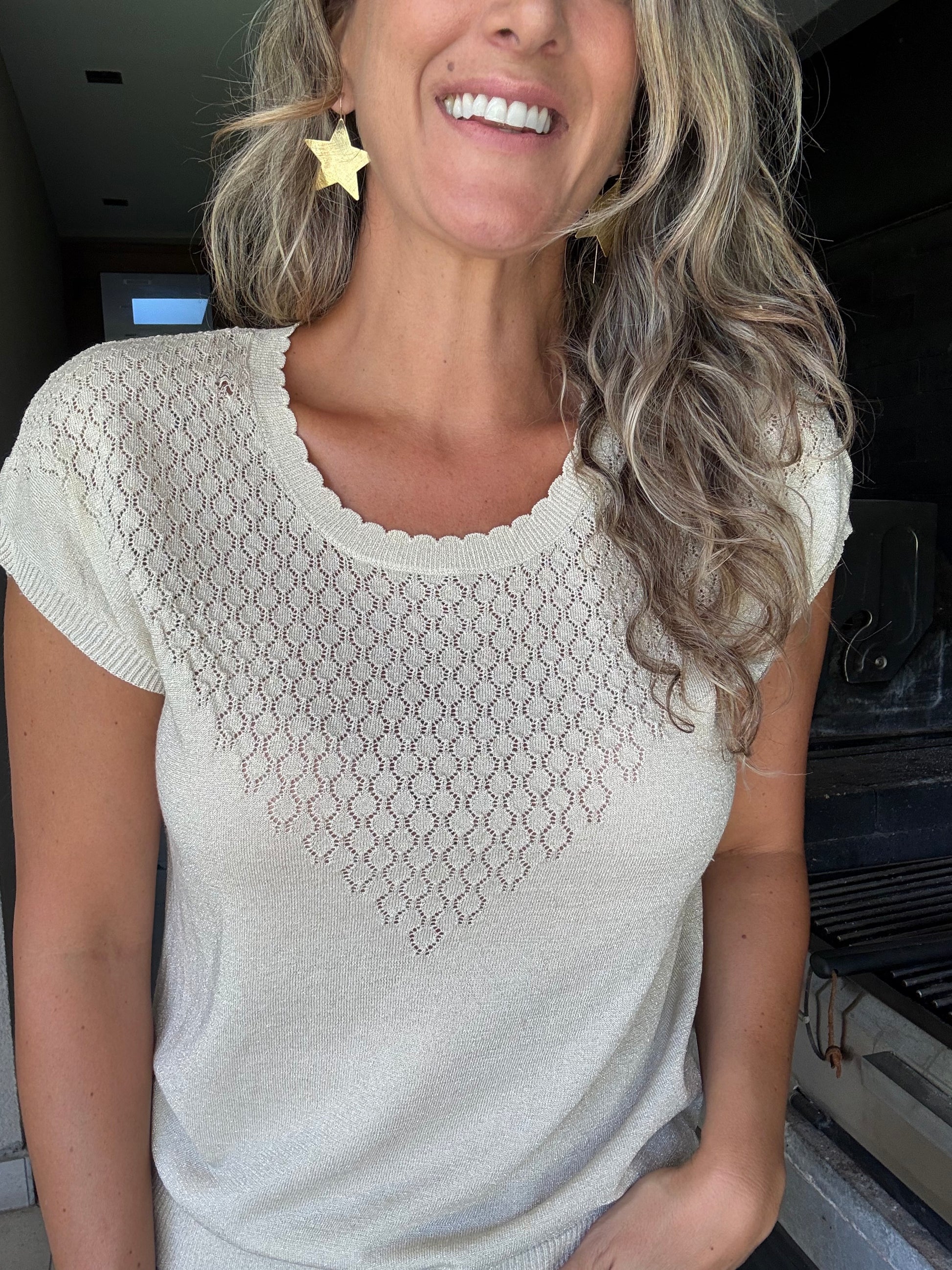 Polera de hilo con brillos sutiles.