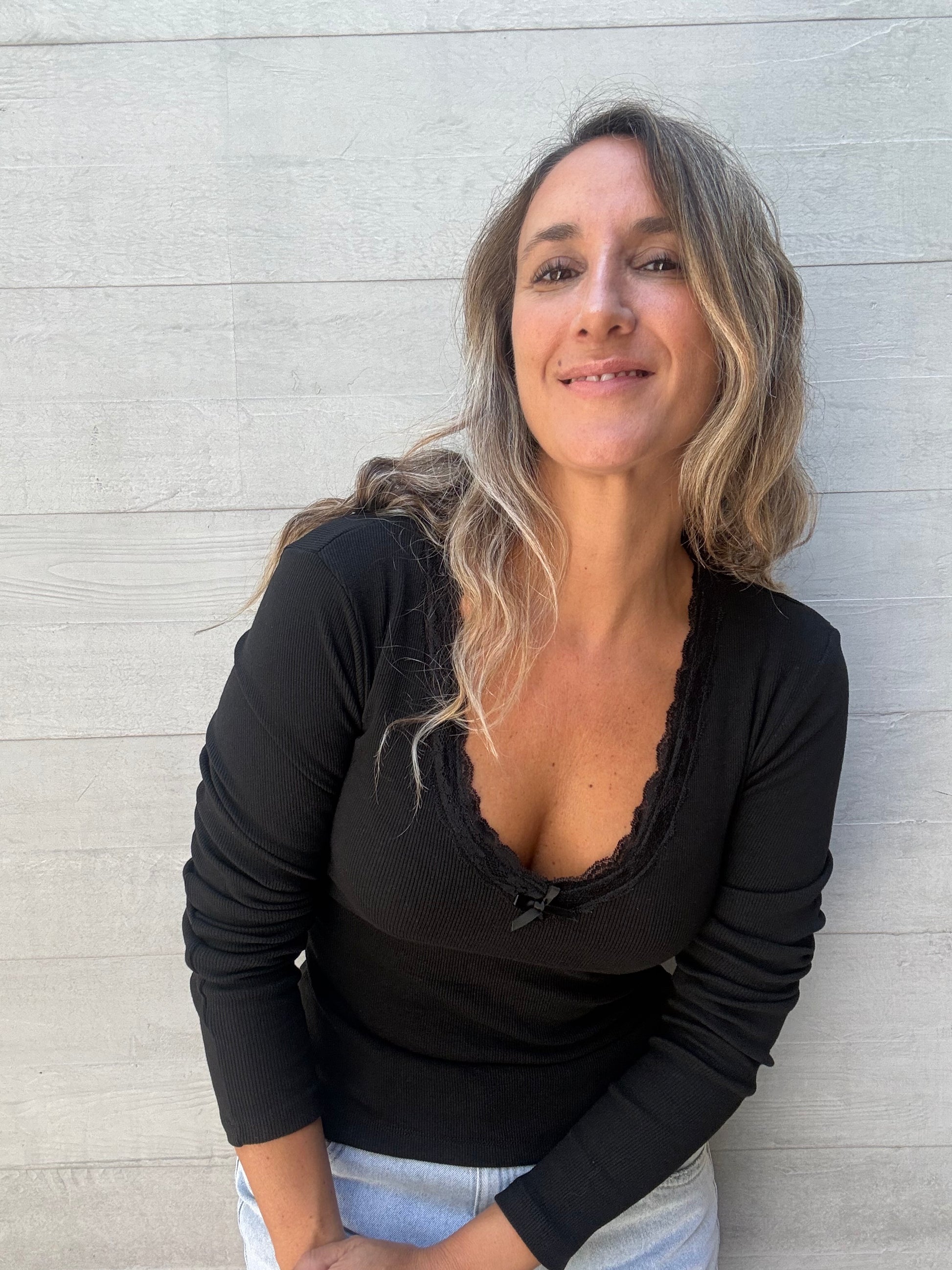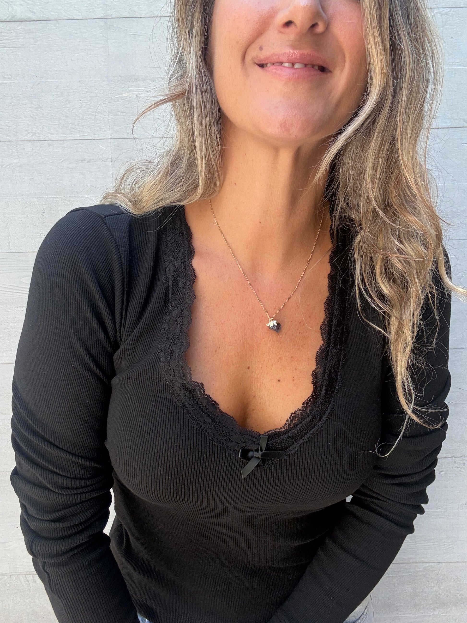 Polera de algodon grueso y acanalado. Detalle de encaje.